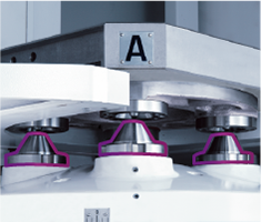 1. 自動交換工作臺機構:自動交換工作臺機構固定于底座上,有效將精度問題降低至最低;APC 交換速度:12秒 ( 伺服驅動 )。